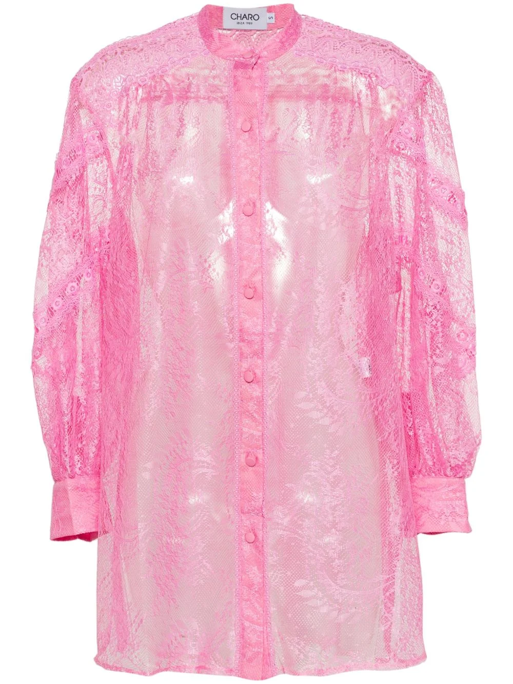 Lumie balloon-sleeve lace shirt Highlights - Bubblegum pink - Lace design - Semi-sheer construction - Band collar - Long sleeves - Buttoned-cuff sleeves - Straight hem - Front button fastening Imported Composition Polyester 100% SIZE & FIT Model measurements Height 5 ft 11 in(1.8 m) Bust/Chest 31.49 in(80 cm) Hips 35.82 in(91 cm) Waist 24.8 in(63 cm) FittingInformation Designed to be unstructured, offering a loose fit throughout Made from a lightweight non-stretch fabric This piece fits true to size – take your usual size Washing instructions Hand Wash