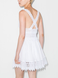 Marilyn floral lace dress Presented in crisp white, this Charo Ruiz Ibiza dress has a lightweight cotton-blend construction that is accentuated by the delicate detailing of its lace trim. A fun crossover back and flared skirt give the piece versatility. Imported Composition Cotton 90%, Polyester 10% SIZE & FIT Model measurements Height 5 ft 9 in(1.76 m) Bust/Chest 33.46 in(85 cm) Hips 37.79 in(96 cm) Waist 25.59 in(65 cm) Measurement BUST 29.01 in(73.7 cm) LENGTH 32 in(81.3 cm) WAIST 30 in(76.2 cm) HIPS 37 in(94 cm) FittingInformation This piece fits true to size. We recommend you get your regular size Designed for a close fit at the bust and waist, but loose at the hip Made with a mid-weight non-stretch fabric Washing instructions Hand Wash