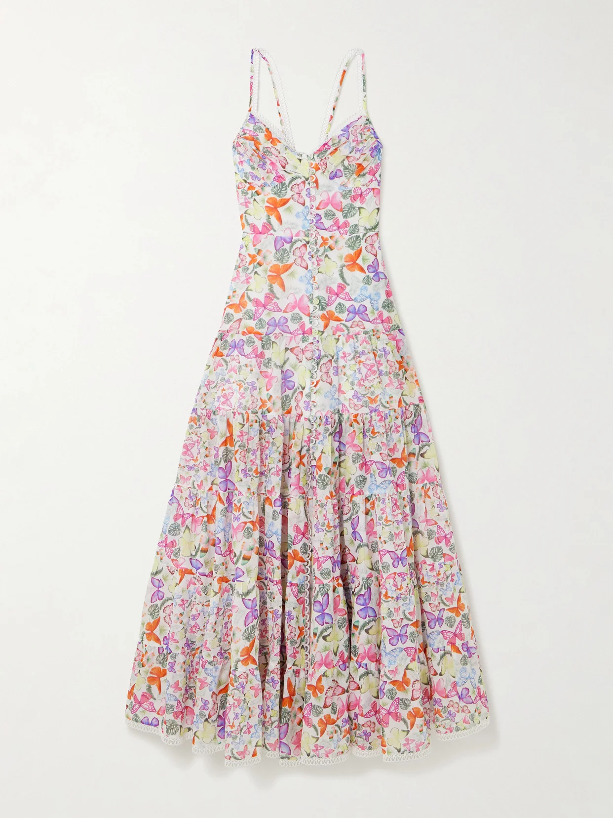 Sure to look stunning in your summer photos, Charo Ruiz's 'Melia' dress is printed with painterly butterflies and finished with a pretty scalloped guipure lace trim. It's made from breezy cotton-blend voile and has a shirred back to draw in the bodice.