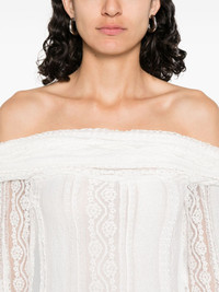 off-shoulder dress Highlights - White - Long sleeves - All-over floral embroidery Imported Composition Cotton 50%, Nylon 47%, Spandex/Elastane 3% SIZE & FIT Model measurements Height 5 ft 10 in(1.79 m) Bust/Chest 33.07 in(84 cm) Hips 35.82 in(91 cm) Waist 24.01 in(61 cm) FittingInformation Designed for a close fit throughout Made from a midweight stretch fabric, this piece offers elasticity and flexibility when worn Washing instructions Hand Wash