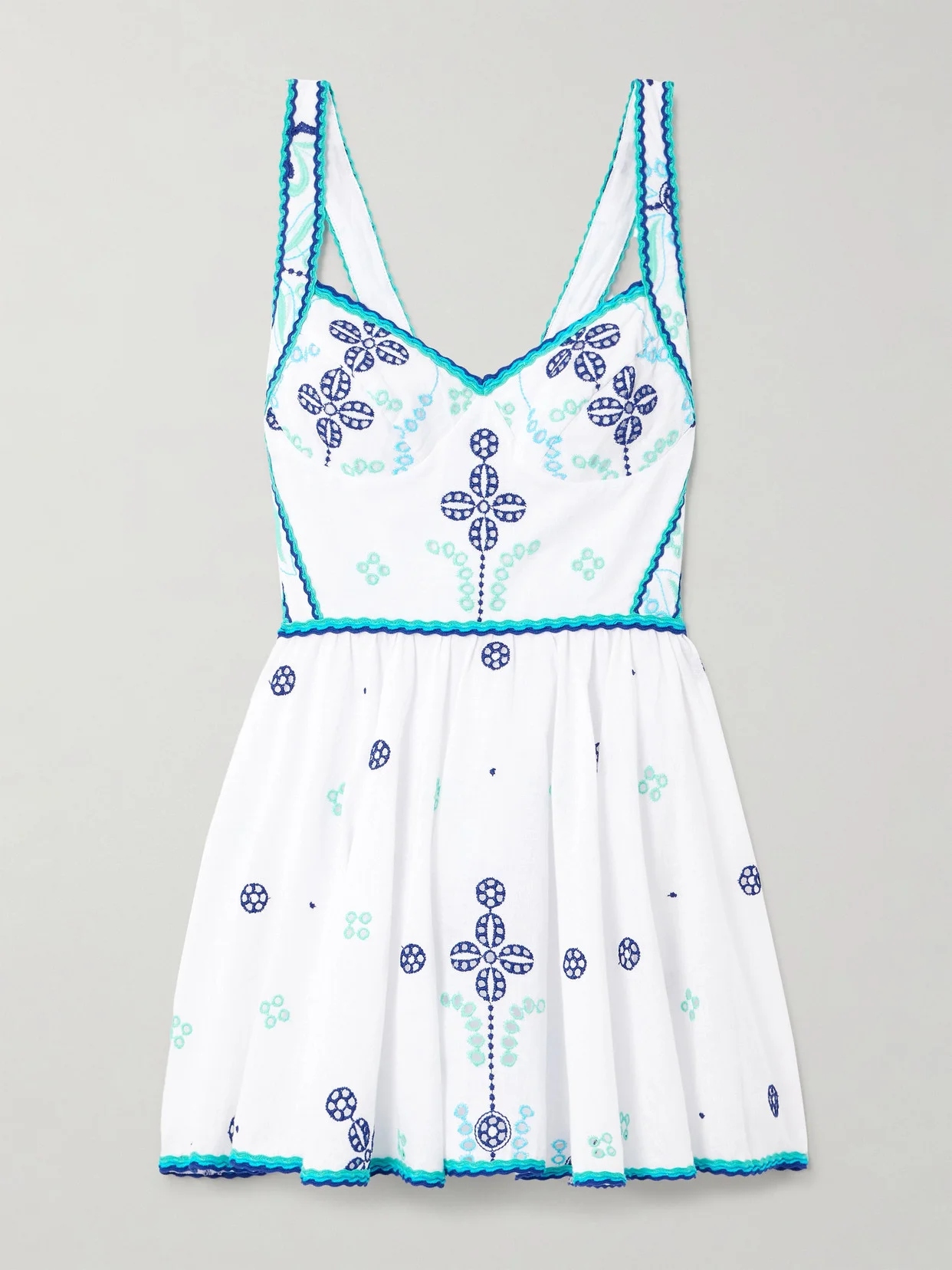 Charo Ruiz's way with embroidery shines in this 'Moli' dress. It's made from airy broderie anglaise cotton-blend decorated with abstract and floral motifs across the fitted bodice and fanning mini skirt.