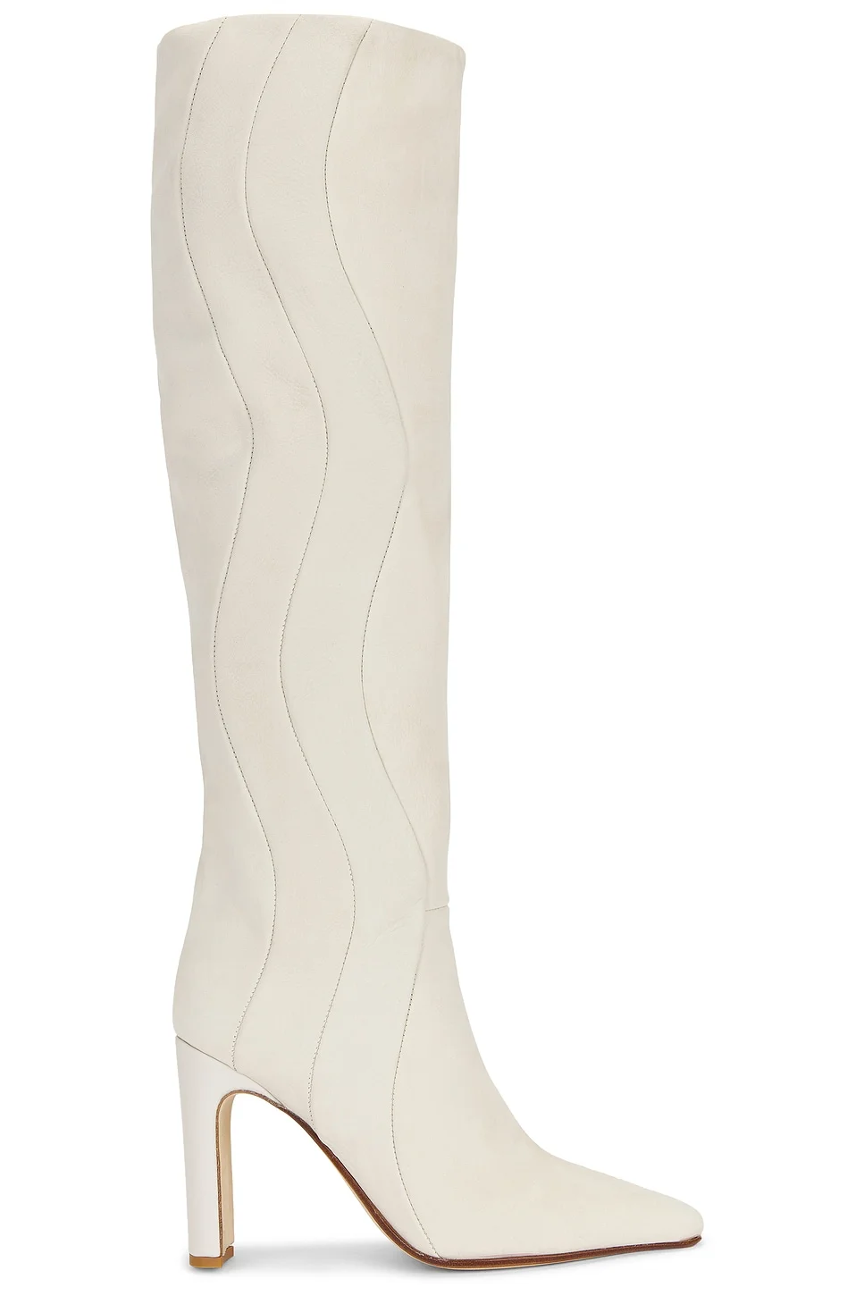 - Suede upper with leather sole - Pull-on styling - Leather footbed and lining - Pointed toe - Approx 90mm/ 3.5 inch heel Approx 431mm/ 17 inch shaft Opening measures approx 47" in circumference - Revolve Style No. CRIB-WZ1 - Manufacturer Style No. 257700