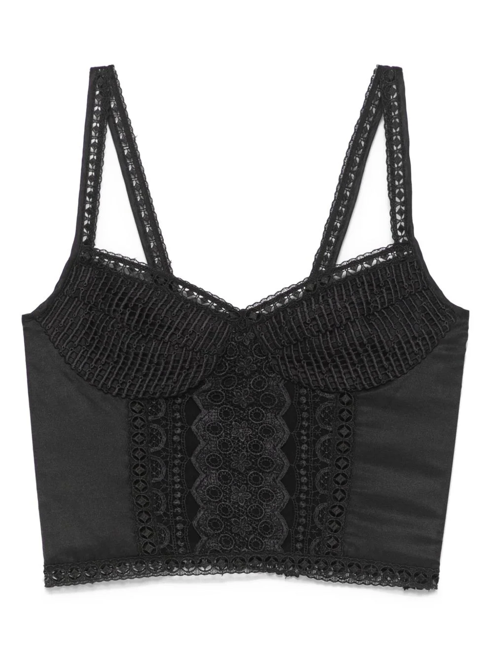 Sannie crop top Highlights - Black - Side zip fastening - Sweetheart neck - Sleeveless - Shirred panel Imported Composition Cotton 40%, Polyester 30%, Silk 20%, Nylon 7%, Spandex/Elastane 3% SIZE & FIT Model measurements Height 5 ft 11 in(1.8 m) Bust/Chest 31.49 in(80 cm) Hips 35.82 in(91 cm) Waist 24.8 in(63 cm) FittingInformation Designed for a close fit throughout Cropped in length Made from a lightweight non-stretch fabric Washing instructions Hand Wash