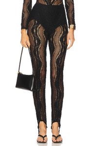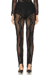 - 60% cotton 32% polyester 8% spandex - Hand wash - Pull-on styling with elastic waistband - Stirrup design at leg opening - Midweight lace fabric - Garment is intentionally sheer, undergarments will show through - Please note undergarment not included - Item not sold as set.13" at the knee narrows to 10" at the leg opening - Revolve Style No. CRIB-WP3 - Manufacturer Style No. 257500
