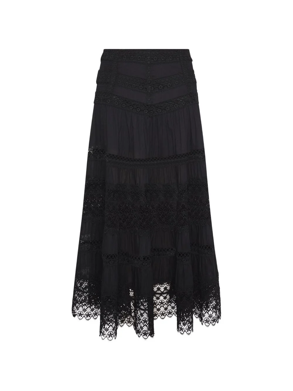 Serza crochet-design tiered skirt Highlights - Black - Crochet design - Tiered - Scalloped edge Imported Composition Cotton 90%, Plastic 10% Washing instructions Read Manufacturer Guidelines