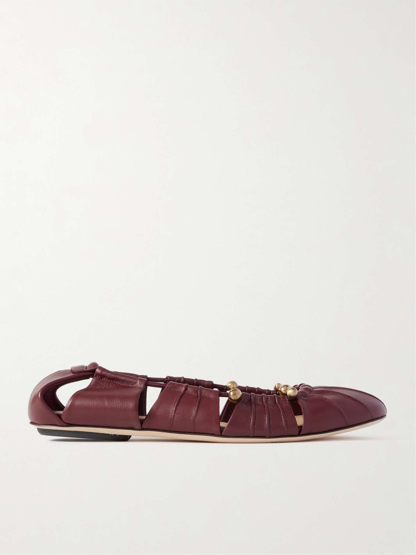 Chic and bohemian, Chloe’s ‘Luna’ ballet flats are based on a style from the French label’s archive. They’re made from gathered leather in cutout panes that are threaded together with bead-embellished cords. Size & Fit - Fits true to size, take your normal size - Italian sizing Details & Care - Slight heel - Burgundy leather (Calf) - Slip on