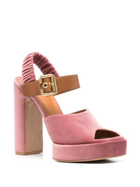 130mm Paddington sandals Highlights - Rose pink - Buckle-strap fastening - Branded leather insole - High block heel - Leather sole Made in Italy Composition Outer: Fabric 100% Sole: Calf Leather 100% Lining: Calf Leather 100% SIZE & FIT Measurement HEEL 5.11 in(13 cm)