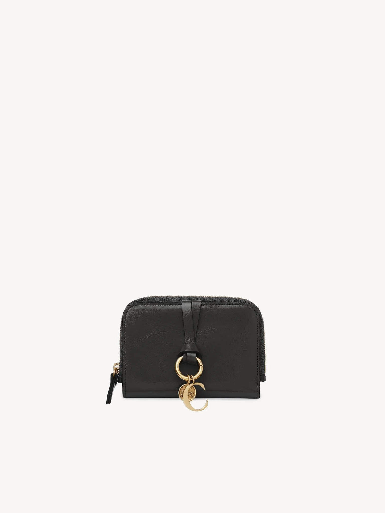 The Maison's iconic Alphabet line includes this bifold wallet in shiny calfskin, featuring a zipped compartment and multiple card slots. A knotted leather link is embellished with Chloe's signature golden initial and Horse Medal. PRODUCT DETAILS Bifold wallet in shiny calfskin Main lining: Calfskin Inside trim: 65% Polyester, 35% Cotton - 1 zipped compartment - 1 bill compartment - 6 card slots - 2 flat pockets - Zip & snap button closure Comes with a dust bag - Width: 4.7" (12 cm) - Height: 3.5" (9 cm) - Depth: 0.8" (2 cm) This bifold wallet is made from semi-aniline leather. Tanning imparts a specific character to the skin, such as hues and wrinkles, combined with a light and transparent aniline finish. Respect the care instructions on the leaflet. To make this product, Chloe worked with Leather Working Group (LWG) certified leather manufacturers. LWG certifies tanneries based on their water and energy usage, management of chemicals, solid waste, and wastewater. Color: Black Item code: CHC25SP534O16001