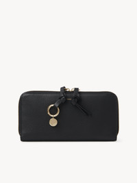 The Alphabet long wallet with zipper brings personalization to a classic, everyday accessory. With a little creativity, the wallet's clean lines can be beautifully embellished with handpicked golden initial charms featuring the Maison's striking design. Delicate leather links with a ring and Chloé medal secure the initials. The beige rosé nappa lining brings a sophisticated finish to this elegant wallet for ladies. PRODUCT DETAILS Long wallet with zipper in grained calfskin & shiny calfskin - 2 main compartments - 2 flat pockets - 12 card slots - 1 central zipped compartment Comes with a dust bag - Width: 7.5" (19 cm) - Height: 3.7" (9.5 cm) - Depth: 0.8" (2 cm) This wallet for ladies is made from semi-aniline leather. The half-transparent finish imparts a robust nature to the product while preserving its natural character. Follow care instructions on the leaflet. Color: Black Item code: CHC21WP706F57001