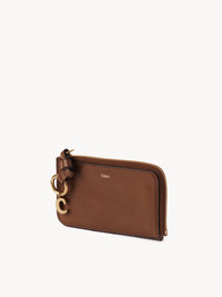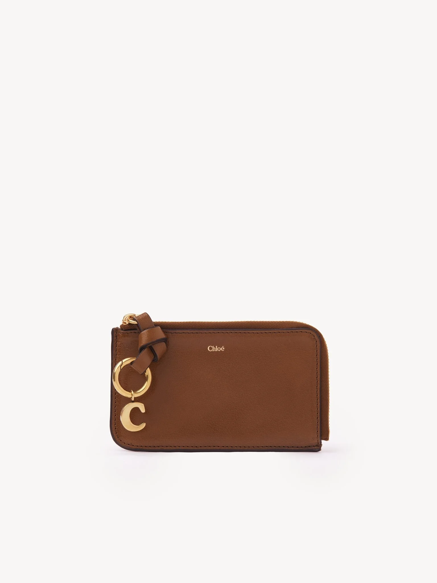 The Maison's iconic Alphabet line includes this purse in natural shiny buffalo leather. Sized to fit your essentials, it features multiple card slots and a flat pocket at the back. A knotted leather link is embellished with Chloe-designed golden initial charms. PRODUCT DETAILS Leather purse in natural shiny buffalo leather Main lining: 65% Polyester, 35% Cotton - 1 main zipped compartment - 4 card slots - 1 flat pocket - Zipped closure Comes with a dust bag - Width: 5.1" (13 cm) - Height: 3" (7.5 cm) - Depth: 0.8" (2 cm) This leather purse is made from pure aniline leather. Tanning imparts a specific character to the skin, such as hues and wrinkles, combined with a light and transparent aniline finish. Respect the care instructions on the leaflet. To make this product, Chloe worked with Leather Working Group (LWG) certified leather manufacturers. LWG certifies tanneries based on their water and energy usage, management of chemicals, solid waste, and wastewater. Color: Clay Brown Item code: CHC24WP944O4726M