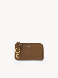 The Maison's iconic Alphabet line includes this purse in natural shiny buffalo leather. Sized to fit your essentials, it features multiple card slots and a flat pocket at the back. A knotted leather link is embellished with Chloe-designed golden initial charms. PRODUCT DETAILS Leather purse in natural shiny buffalo leather Main lining: 65% Polyester, 35% Cotton - 1 main zipped compartment - 4 card slots - 1 flat pocket - Zipped closure Comes with a dust bag - Width: 5.1" (13 cm) - Height: 3" (7.5 cm) - Depth: 0.8" (2 cm) This leather purse is made from pure aniline leather. Tanning imparts a specific character to the skin, such as hues and wrinkles, combined with a light and transparent aniline finish. Respect the care instructions on the leaflet. To make this product, Chloe worked with Leather Working Group (LWG) certified leather manufacturers. LWG certifies tanneries based on their water and energy usage, management of chemicals, solid waste, and wastewater. Color: Dark Khaki Item code: CHC24WP944O4720V