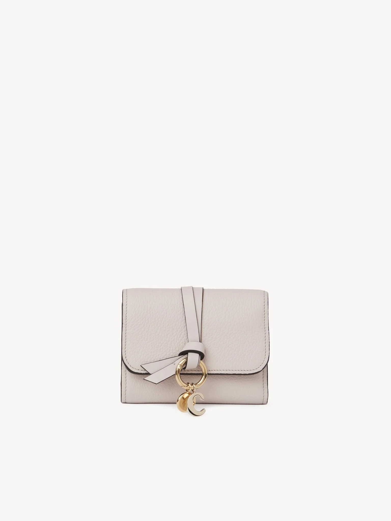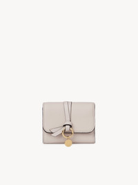 The Alphabet small tri-fold wallet with leather link is scaled down to hold the essentials—ideal for Chloé girls who prefer to keep things light and simple. Crafted from grained and shiny calfskin, the wallet's smaller proportions make the Chloé-designed golden initial charms more striking. The delicate leather link and gold metal loop add a feminine and decorative touch. Compact by design, this small wallet will slip easily into your clutch or a small purse. PRODUCT DETAILS Tri-fold wallet with leather link in grained & shiny calfskin - 1 note/bill compartment - 1 external back pocket with flap - 7 cards slots Comes with a dust bag - Width: 4.3" (11 cm) - Height: 3.5" (9 cm) This small wallet is made from semi-aniline leather. The half-transparent finish imparts a robust nature to the product while preserving its natural character. Respect care instructions on the leaflet. To make this product, Chloé worked with Leather Working Group (LWG) certified leather manufacturers. LWG certifies tanneries based on their water and energy usage, management of chemicals, solid waste, and wastewater. Color: Wild Grey Item code: CHC21WP718F57084