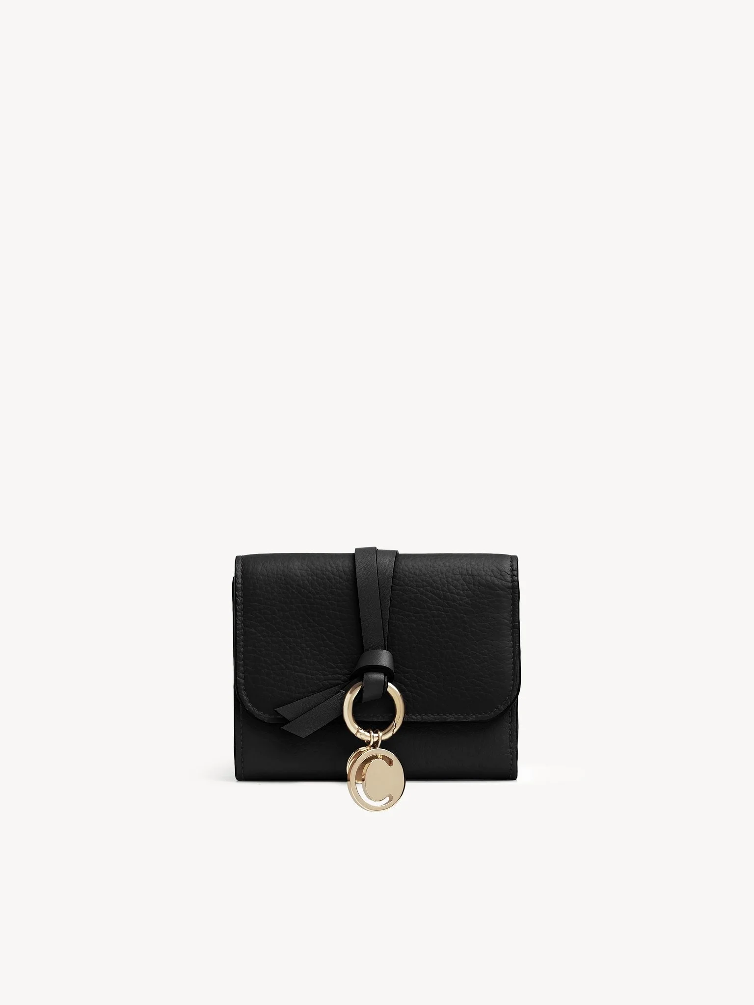 The Alphabet small tri-fold wallet with leather link is scaled down to hold the essentials—ideal for Chloe girls who prefer to keep things light and simple. Crafted from grained and shiny calfskin, the wallet's smaller proportions make the Chloe-designed golden initial charms more striking. The delicate leather link and gold metal loop add a feminine and decorative touch. Compact by design, this small wallet will slip easily into your clutch or a small purse. PRODUCT DETAILS Tri-fold wallet with leather link in grained & shiny calfskin - 1 bill compartment - 1 front external pocket Comes with a dust bag - Width: 4.3" (11 cm) - Height: 3.5" (9 cm) This small wallet is made from semi-aniline leather. The half-transparent finish imparts a robust nature to the product while preserving its natural character. Follow care instructions on the leaflet. Color: black Item code: CHC21WP718F57001