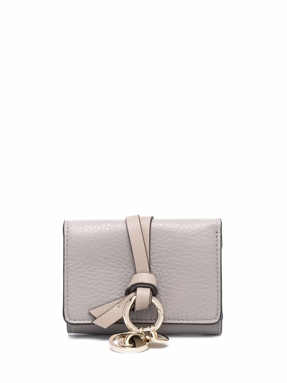 Alphabet tri-fold wallet grey calf leather tri-fold design grained texture gold-tone hardware knot detailing charm detail button fastening note compartment debossed internal logo Imported Composition Outer: Calf Leather 100% Lining: Polyester 65%, Cotton 35% SIZE & FIT Measurement DEPTH 0.78 in(2 cm) LENGTH 3.74 in(9.5 cm) WIDTH 2.75 in(7 cm)