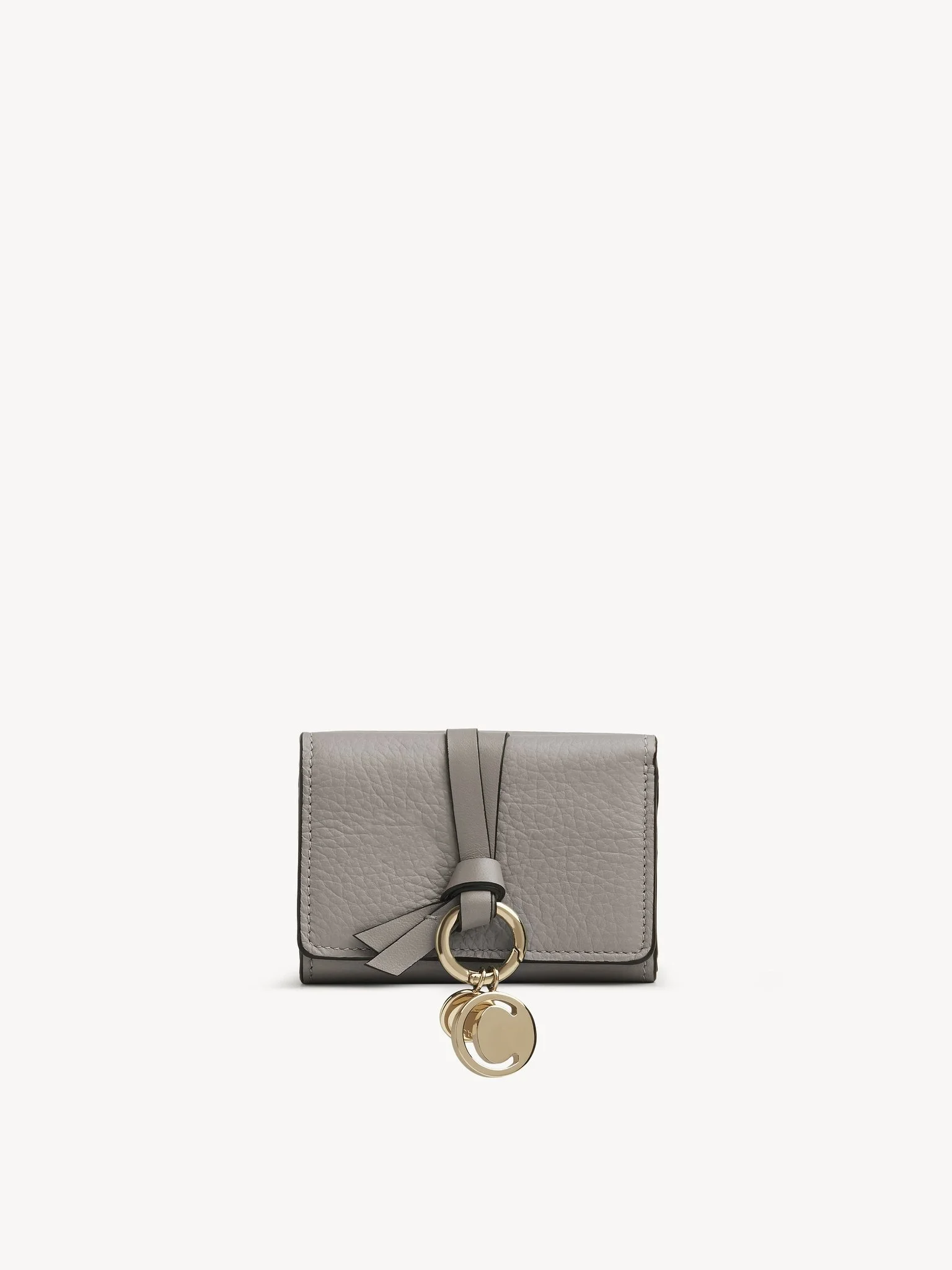The Alphabet small tri-fold wallet is perfectly sized to hold the bare essentials. Crafted from grained and shiny calfskin, it opens to reveal a compact interior with a single bill compartment. A coin compartment with flap adorns the back. A gold metal loop attached to the knotted leather link brings striking hardware to this compact wallet for ladies. Add your initial charm for decorative, personalized detail. PRODUCT DETAILS Mini tri-fold wallet in grained & shiny calfskin - 1 coin pocket with snap closure - 1 flat bill compartment - 1 credit card pocket - Width: 3.7" (9.5 cm) - Height: 2.8" (7 cm) This small wallet is made from semi-aniline leather. The half-transparent finish imparts a robust nature to the product while preserving its natural character. Follow care instructions on the leaflet. Color: cashmere gray Item code: CHC21WP719F57053