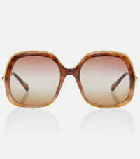Daily looks are stylish with the Aly sunglasses from Chloe. The oversized pair have square frames and are finished with subtle logo accents that adorn the metal temples. Product Details - Frame material: acetate, metal - Frame color: brown - Lens filter category 2 - Lens color: brown - Made in Italy - Includes: case, cleaning cloth - The color of the case may vary - Item number: P01100273 Size & Fit - Lens width: 56mm-2.2" - Bridge size: 19mm-0.75" - Earpiece length: 135mm-5.3"