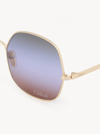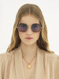 These Aly square sunglasses pair a lightweight graphic frame in shiny gold-tone metal with triple gradient lenses in a palette of green, blue and rust. The Chloe logo finishes the left lens. Drop-shaped openings at the temple tips make these sunglasses compatible with Chloe's eyewear jewelry. PRODUCT DETAILS Square sunglasses in gold metal & bio-based nylon - 100% UVA and UVB protection - Not prescription friendly - Chloe logo engraved on the temples - Filter category: 1 These sunglasses come with a case and lens cloth - Lens: 2.4" (60 mm) - Bridge: 0.7" (17 mm) - Temple: 5.5" (140 mm) - Gold metal frame - Gradient green, blue & rust lenses Item code: CHC25SEK0282844