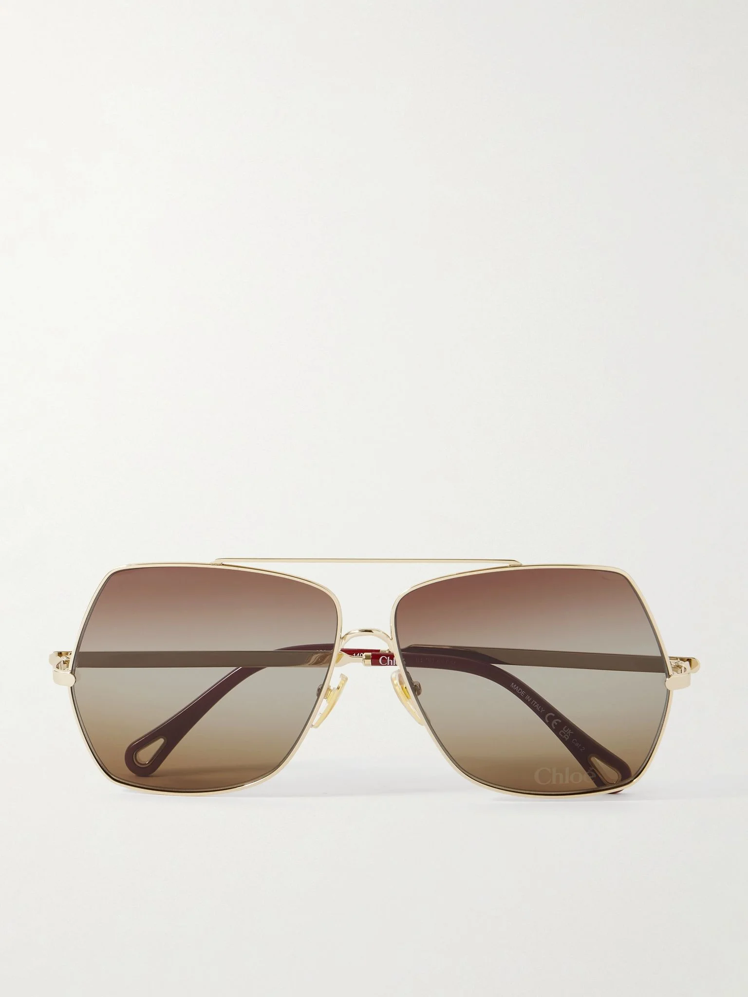 CHLOE Eyewear's sunglasses have oversized frames and double brow bars inspired by aviator styles. They've been made in Italy from gold-tone metal and fitted with gradient lenses subtly branded with the moniker. Details & Care - Gold-tone metal - Come with a case - 100% UV protection