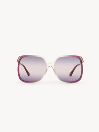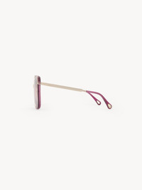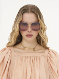 These Aly square sunglasses have a 70s-style frame in a mix of transparent violet lower-impact acetate and shiny gold metal. The triple gradient lenses in violet, light pink and blue are signed with the Chloe logo. Drop-shaped openings at the temple tips make these sunglasses compatible with Chloe's eyewear jewelry. PRODUCT DETAILS Square sunglasses in lower-impact acetate, gold metal & bio-based nylon - 100% UVA and UVB protection - Not prescription friendly - Chloe logo engraved on the temples - Filter category: 1 These sunglasses come with a case and lens cloth - Lens: 2.4" (60 mm) - Bridge: 0.6" (15 mm) - Temple: 5.5" (140 mm) These sunglasses are made with carefully selected materials. Please handle with care for a longer product life. - Store in the case provided. - Clean with a soft, dry cloth. - If necessary, use a damp cloth and mild detergent. Do not use solvents or aggressive detergents which may alter the features of the sunglasses. - Gradient transparent violet lower-impact acetate & gold metal frame - Gradient violet, light pink & blue lenses Item code: CHC25SEK0286820