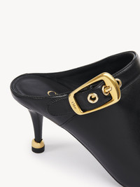 Crafted from shiny calfskin, the Andrea heeled mules have a sleek, fitted silhouette with a modern, asymmetrical toe shape. The minimalist upper features a Chloe-engraved buckle while the comfortable heel is embellished with a decorative ring engraved with the Chloe logo. PRODUCT DETAILS Mule heel height: 2.8" (7 cm) Heel-to-toe drop: 2.6" (6.5 cm) Upper: calfskin Main lining: calfskin Sole: cowhide Heel: cowhide Fit true to size, European sizing - Slip-on To make this product, Chloe worked with Leather Working Group (LWG) certified leather manufacturers. LWG certifies tanneries based on their water and energy usage, management of chemicals, solid waste, and wastewater. Color: Black Item code: CHC25S08CQK001