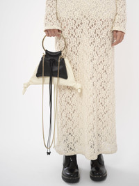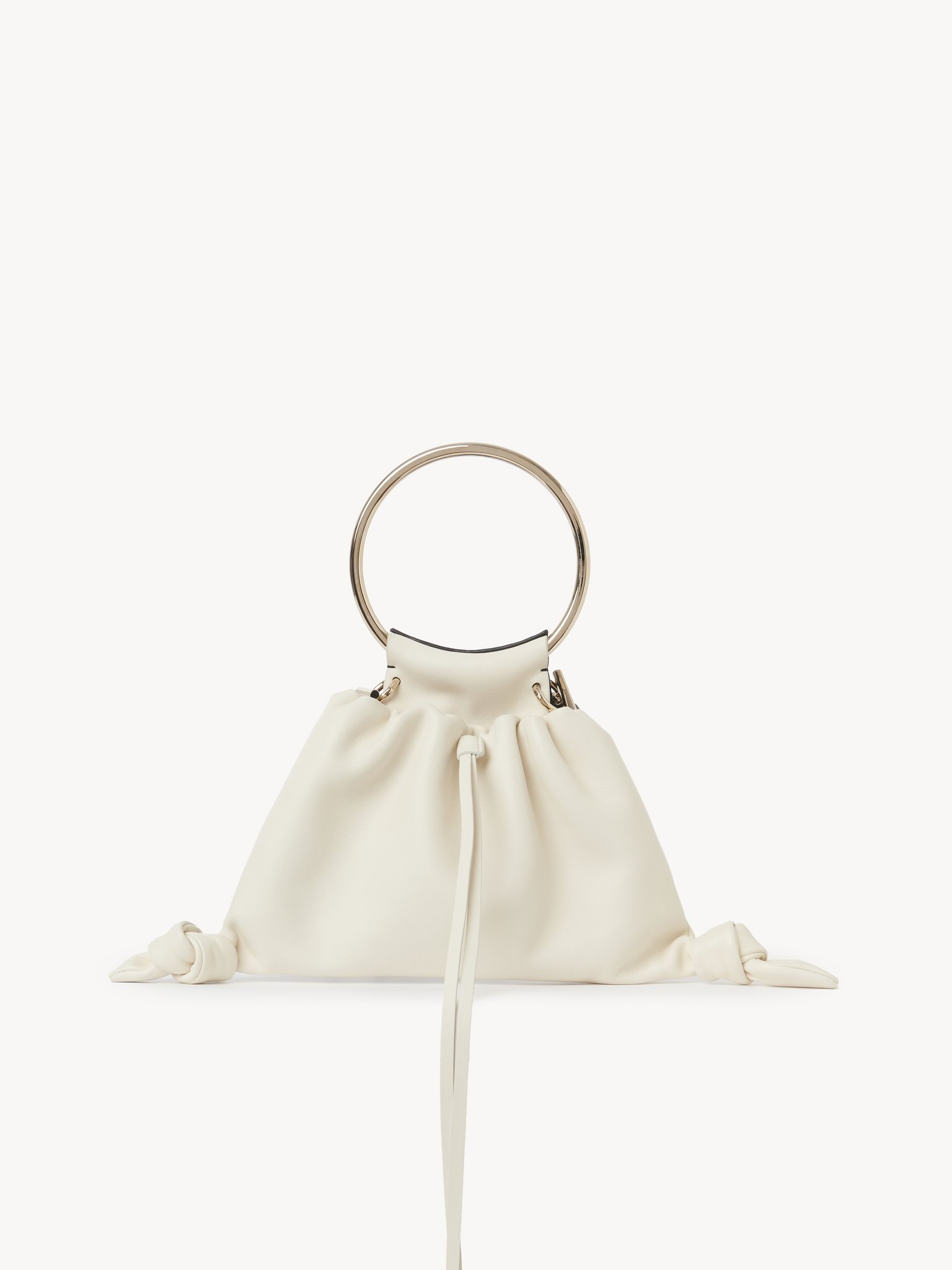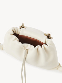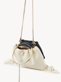 Crafted from two-toned nappa lambskin, this Arlène pouch is a versatile accessory that made a strong statement on the Fall-Winter 2023 runway. The pouch features knotted leather details and long, dangling tassels. The gold-toned jewelry loop lends a signature touch. The removable chain strap allows for shoulder carry, while the round metallic loop can be carried in hand. All about Arlène... Exuding a casual, bohemian attitude, Arlène features round lines and refined hardware inspired by vintage Chloé bags. Various materials offer versatile styling options. PRODUCT DETAILS Pouch in two-toned nappa lambskin Main material: Lambskin Main lining: Lambskin Carry: Hand & shoulder - Magnetic closure - 1 main compartment - 1 external pouch - Removable chain strap Comes with a dust bag - Width: 12.6" (32 cm) - Height: 6.1" (15.5 cm) - Depth: 2.8" (7 cm) - Strap drop: 21.3" (54 cm) - Handle drop: 4.7" (12 cm) This pouch is made from semi-aniline leather. The half-transparent finish imparts a robust nature to the product while preserving its natural character. Respect care instructions on the leaflet. To make this product, Chloé worked with Leather Working Group (LWG) certified leather manufacturers. LWG certifies tanneries based on their water and energy usage, management of chemicals, solid waste, and wastewater. Color: White & Black Item code: CHC23WS150L2590K