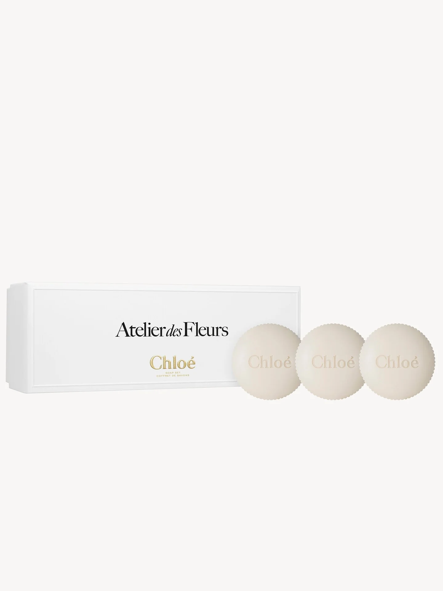 DESCRIPTION This Chloe Atelier des Fleurs Soap Gift Set features Cedrus, Magnolia Alba and Santalum perfumed soap, capturing the spirit of the festive season and the essence of flowers. Lathering into an airy foam, the soap leaves hands cleansed and delicately scented. This ivory soap is engraved with the Chloe logo and finished with the line's signature pleating. The vegan formula is free of artificial colors, and formulated with a minimum of 95% ingredients of natural origin. About the soaps... - Cedrus reveals resin, amber and musky cedar notes. - Magnolia Alba's fresh, floral notes evoke the distinctive aroma of magnolia’s early spring blossoms. - Santalum features the comforting, enveloping and sensual aroma of sandalwood. PRODUCT DETAILS This Atelier des Fleurs Soap Gift Set contains: - Cedrus 3.5 oz (100 g) perfumed soap - Magnolia Alba 3.5 oz (100 g) perfumed soap - Santalum 3.5 oz (100 g) perfumed soap How to use: lather the soap in the palms of your hands with warm water, then gently massage in from the wrists to the fingertips before rinsing. Item code: CHCA50207942