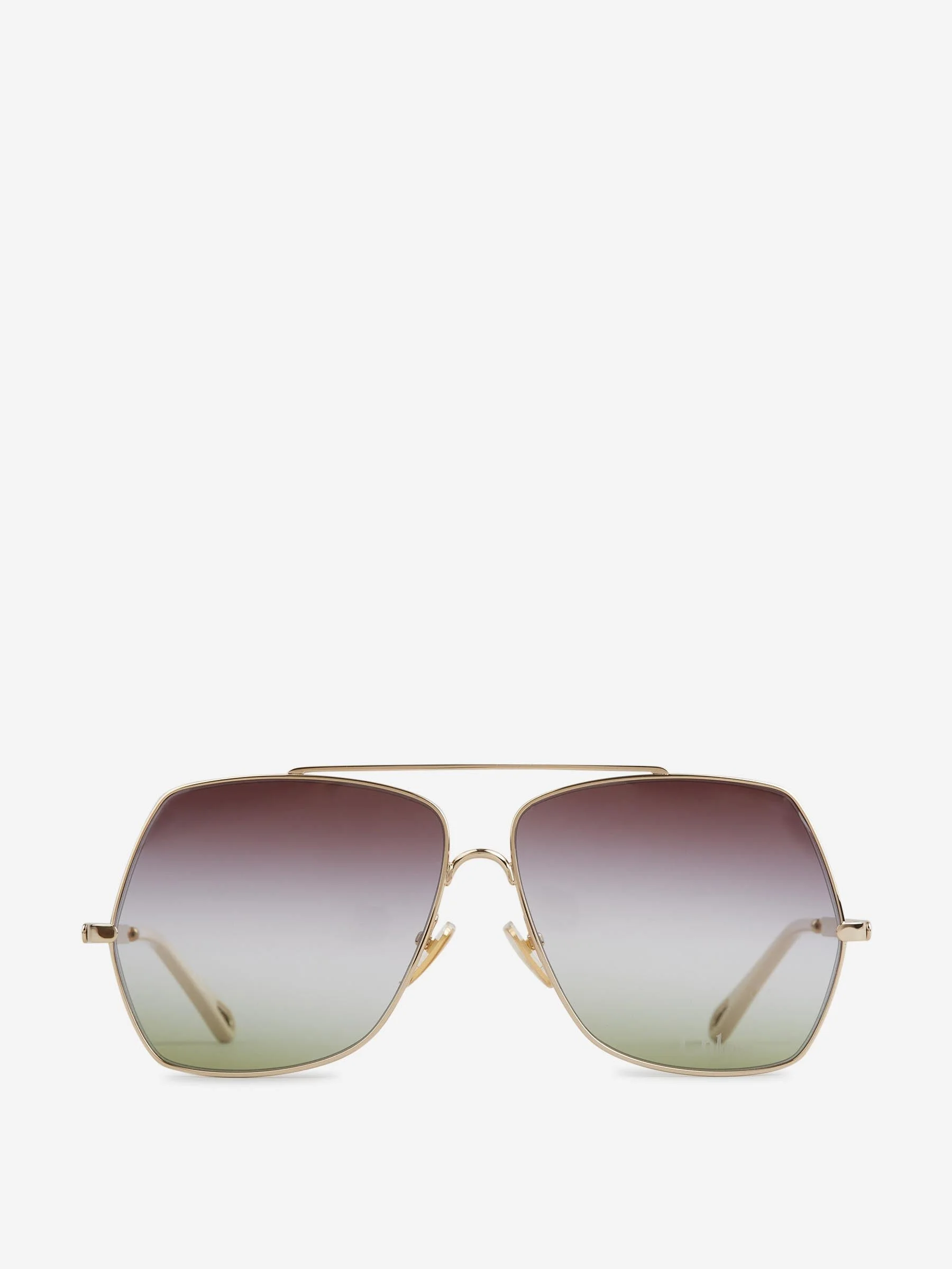 SKU: 860-001256 01 BRAND ID: CH0278S Aviator Sunglasses Sunglasses By Chloe • Bridge and temples with gold metallic details • Round shape • Non-prescription • Metal • Non-polarized • Logo engraved on the temples • 100% UV protection • Sunglasses Composition: Acetate, Metal Made in: Italy