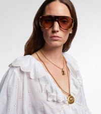Renowned for its free-spirited aesthetic, Chloe's designs are characterized by romance with a Parisian flair. These sunglasses boast oversized frames and gradient lenses for a modern finish. Product Details - Frame material: acetate - Frame color: brown - Lens filter category 2 - Lens color: brown - Made in Italy - Includes: case, cleaning cloth - The color of the case may vary - Item number: P01100278 Size & Fit - Lens width: 60mm-2.35" - Bridge size: 14mm-0.55" - Earpiece length: 135mm-5.3"
