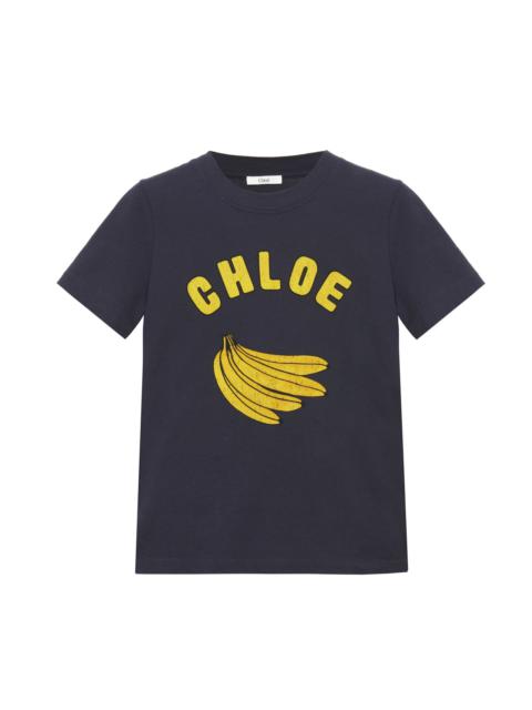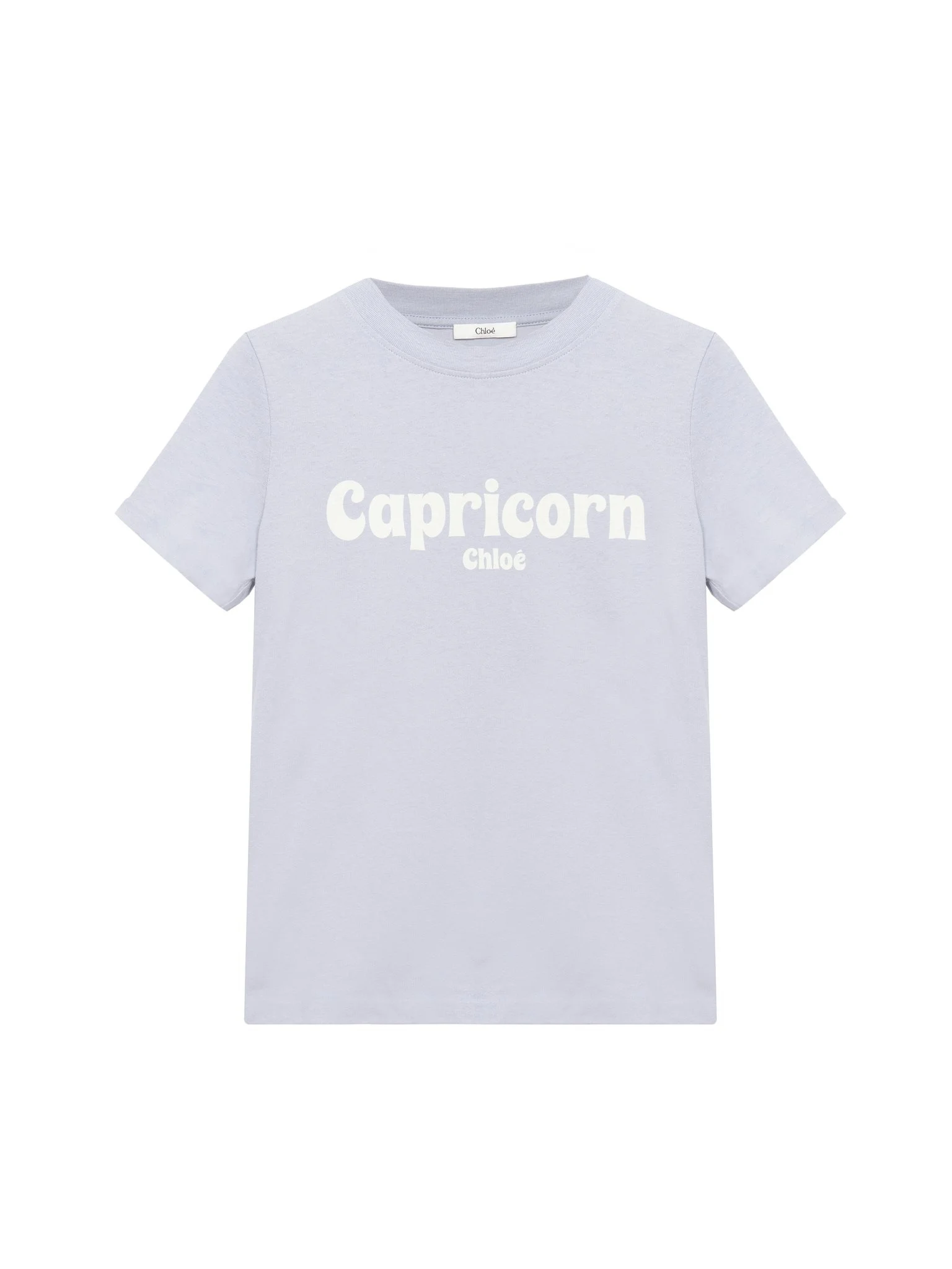 Crew-neck baby fit T-shirt in light organic cotton jersey, featuring a contrast Capricorn Chloe print. PRODUCT DETAILS Baby fit Capricorn T-shirt outer shell: 100% Cotton Fit: fitted - The model is 5'10" (178 cm) and wears a prototype in size 36 - Printed T-shirt - Slips on Care: gentle wash 90°F (30°C) An organic cotton farming system sustains the health of soils, ecosystems and people by eliminating the use of toxic and persistent organic pollutants and increasing water conservation. Color: Ballad Blue Item code: CH25SJH08186473