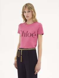 Crew-neck baby fit T-shirt in light washed organic cotton jersey, featuring a contrast Chloe logo print at the front. PRODUCT DETAILS Baby fit logo T-shirt outer shell: 100% Cotton Fit: fitted - The model is 5'10" (178 cm) and wears a prototype in size 36 - Logo T-shirt - Slips on Care: gentle wash 90°F (30°C) An organic cotton farming system sustains the health of soils, ecosystems and people by eliminating the use of toxic and persistent organic pollutants and increasing water conservation. Color: Sweet Pink Item code: CH25SJH081926N8