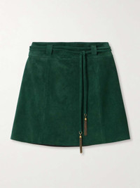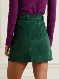 Belted embellished suede mini skirt Forest green