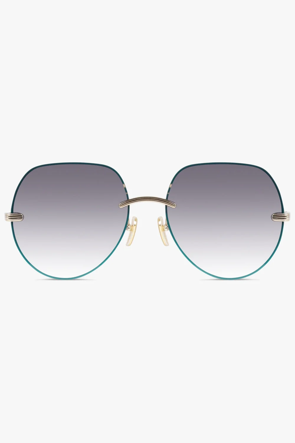 - Round sunglasses in gold metal & bio-based nylon - 100% UVA and UVB protection - Not prescription friendly - Chloe logo engraved on the temples - Filter category: 1 - Gold metal frame - Gradient black, light gray & gray lenses