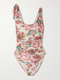 Chloe's swimsuit is all about the romantic details. Patterned with a vintage floral print, it's made from stretch fabric and has a scooped neckline and self-tie bow at one shoulder. The briefs offer medium coverage and the gold-tone logo plaque sits right at the hip. Size & Fit - Fits true to size, take your normal size - Medium brief coverage - Model is 175cm/ 5'9", bra size 32C and is wearing a size FR 36 Model measurements: - Bust: 85cm/ 33.5” - Waist: 63cm/ 25” - Hip: 90cm/ 35.5” Details & Care - Multicolored stretch-nylon - Pulls on - 80% nylon, 20% polyamide - Lotion, sunscreen, oil and chlorine can cause discoloration of this item; this is not a manufacturing defect. Please follow care instructions to keep your swimwear in the best condition