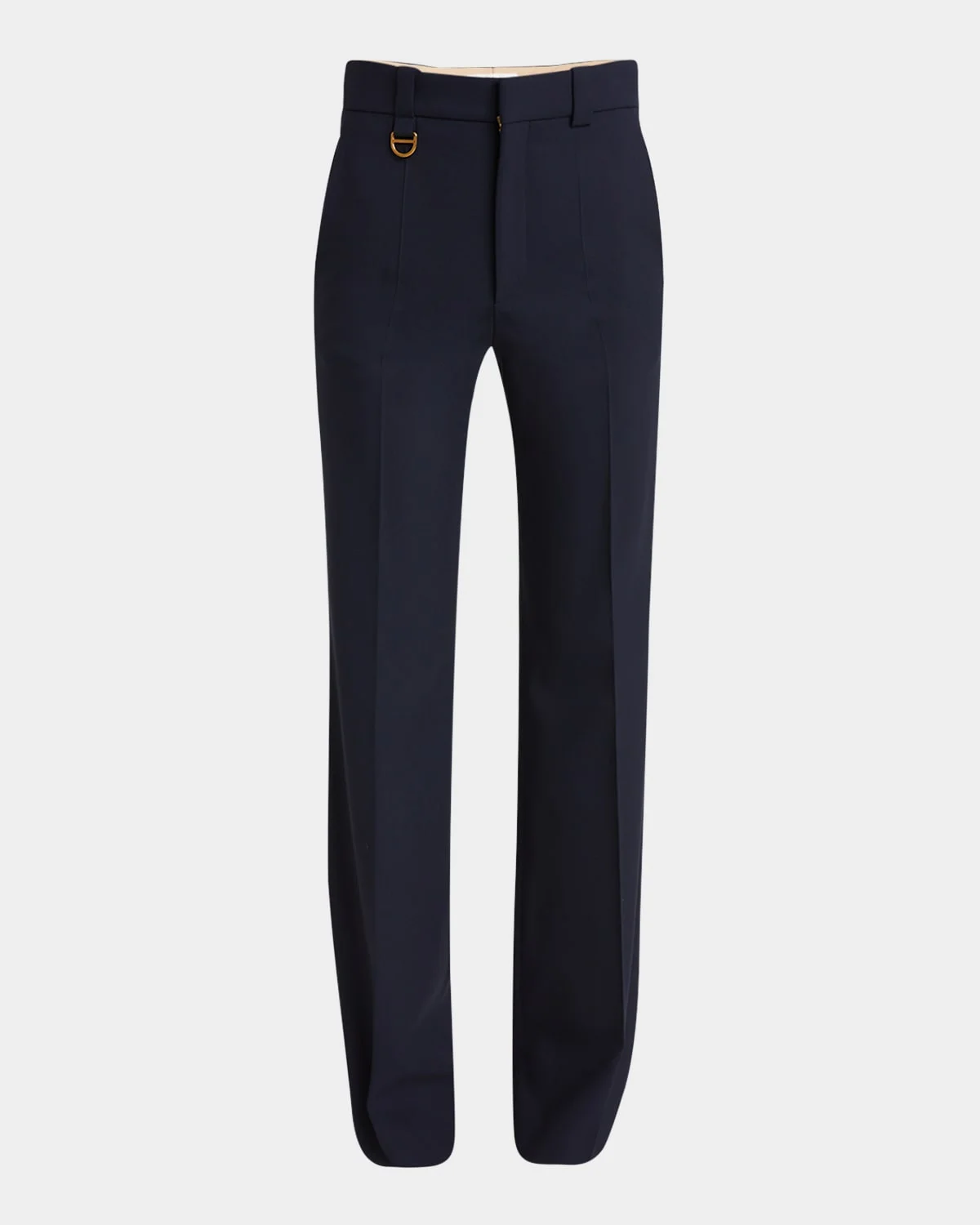 Chloe boyish tailored pants in lowerimpact iconic stretch wool, finished with pressed front creases and a goldtoned Dring detail High rise Side slip pockets; back welt pockets Straight legs Full length Hook/zip fly; belt loops Wool/elastane Professional cleaning recommended Made in France