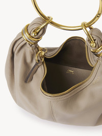 Inspired by the Maison's Archives, this small Bracelet hobo bag is crafted from shiny grained calfskin. The supple, rounded shape is elevated by a bracelet handle and stacked two-toned rings at the ends. Carry the small wristlet bag in the hand or on the shoulder. PRODUCT DETAILS Small Bracelet hobo bag in shiny grained calfskin Main material: Calfskin Main lining: Split calfskin Carry: Hand, shoulder & cross-body - 1 main compartment - 1 inside flat pocket - Zipper closure - 1 removable ring handle - 1 adjustable & removable strap Comes with a dust bag - Width: 12.6" (32 cm) - Height: 5.5" (14 cm) - Depth: 3.9" (10 cm) - Handle drop: 7.9" (20 cm) - Min. strap drop: 19.7" (50 cm) - Max. strap drop: 23.6" (60 cm) This purse is made from pure aniline leather. Tanning imparts a specific character to the skin, such as hues and wrinkles, combined with a light and transparent aniline finish. Respect the care instructions on the leaflet. To make this product, Chloe worked with Leather Working Group (LWG) certified leather manufacturers. LWG certifies tanneries based on their water and energy usage, management of chemicals, solid waste, and wastewater. Color: Motty Grey Item code: CHC24AS611N7223W