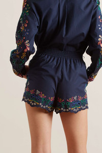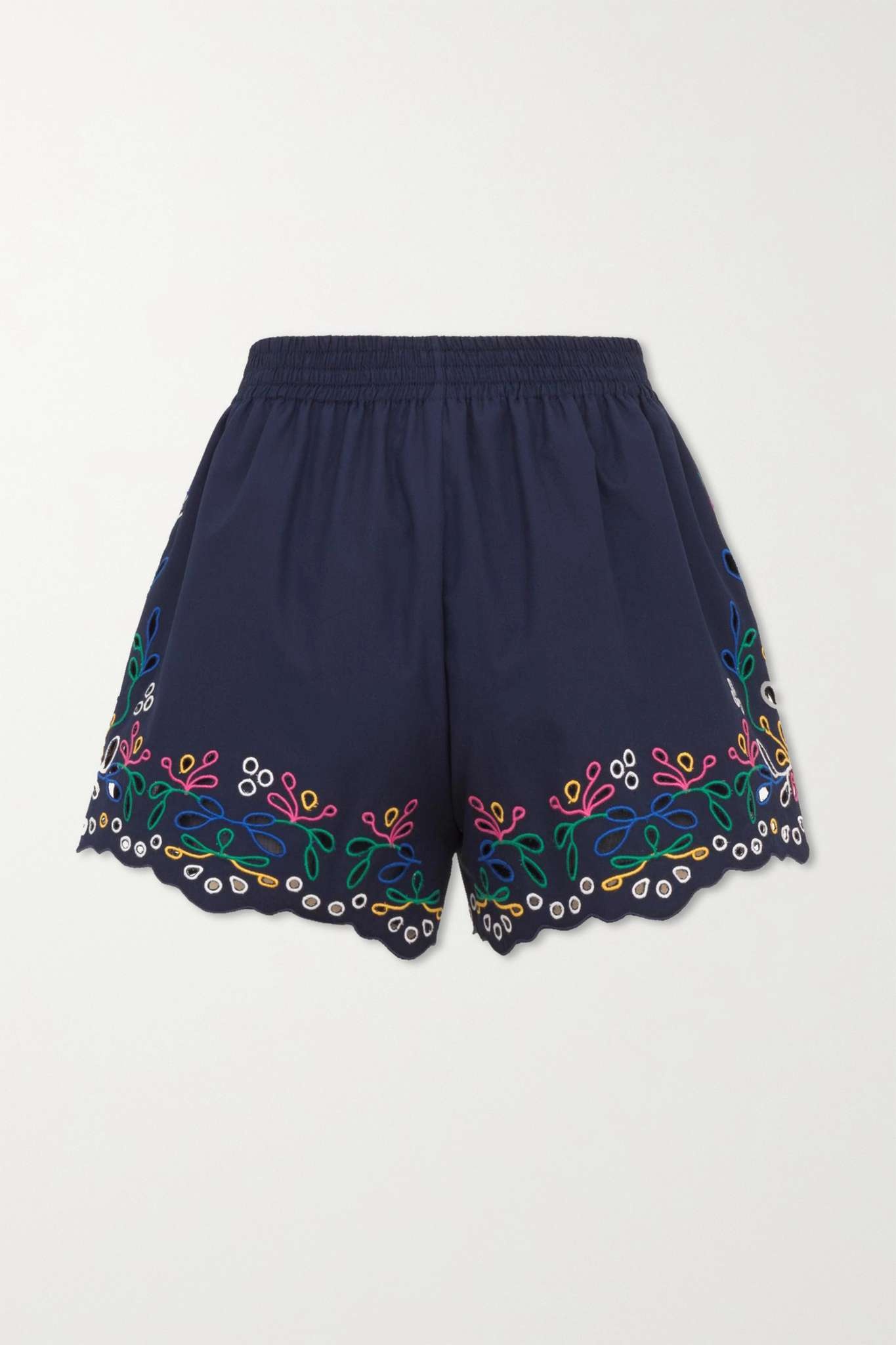 - Navy broderie anglaise cotton-poplin - Pull on - 100% cotton; lining: 100% ramie