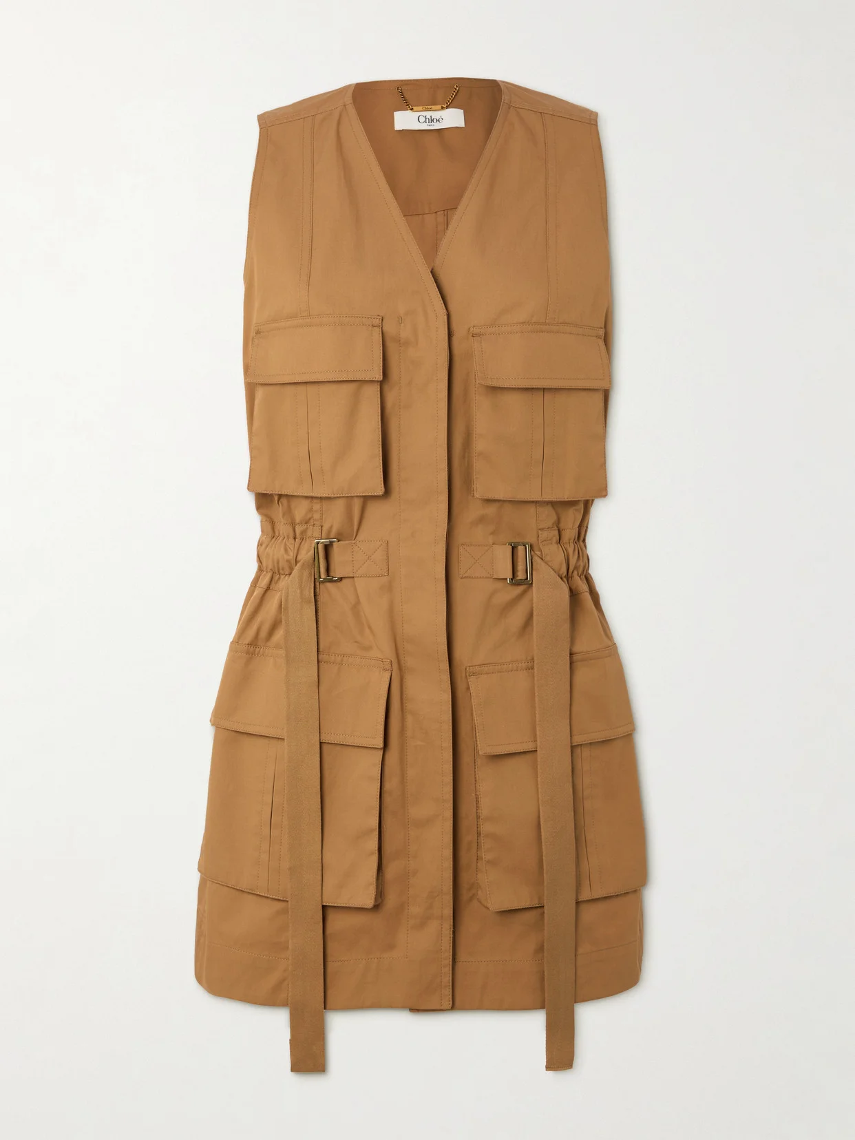 Chloe's vest draws inspiration from classic safari jackets. Made from durable cotton-twill, it's fitted with utilitarian patch pockets and buckle-fastening tabs to define your waist. Layer yours over one of the label's billowy dresses.