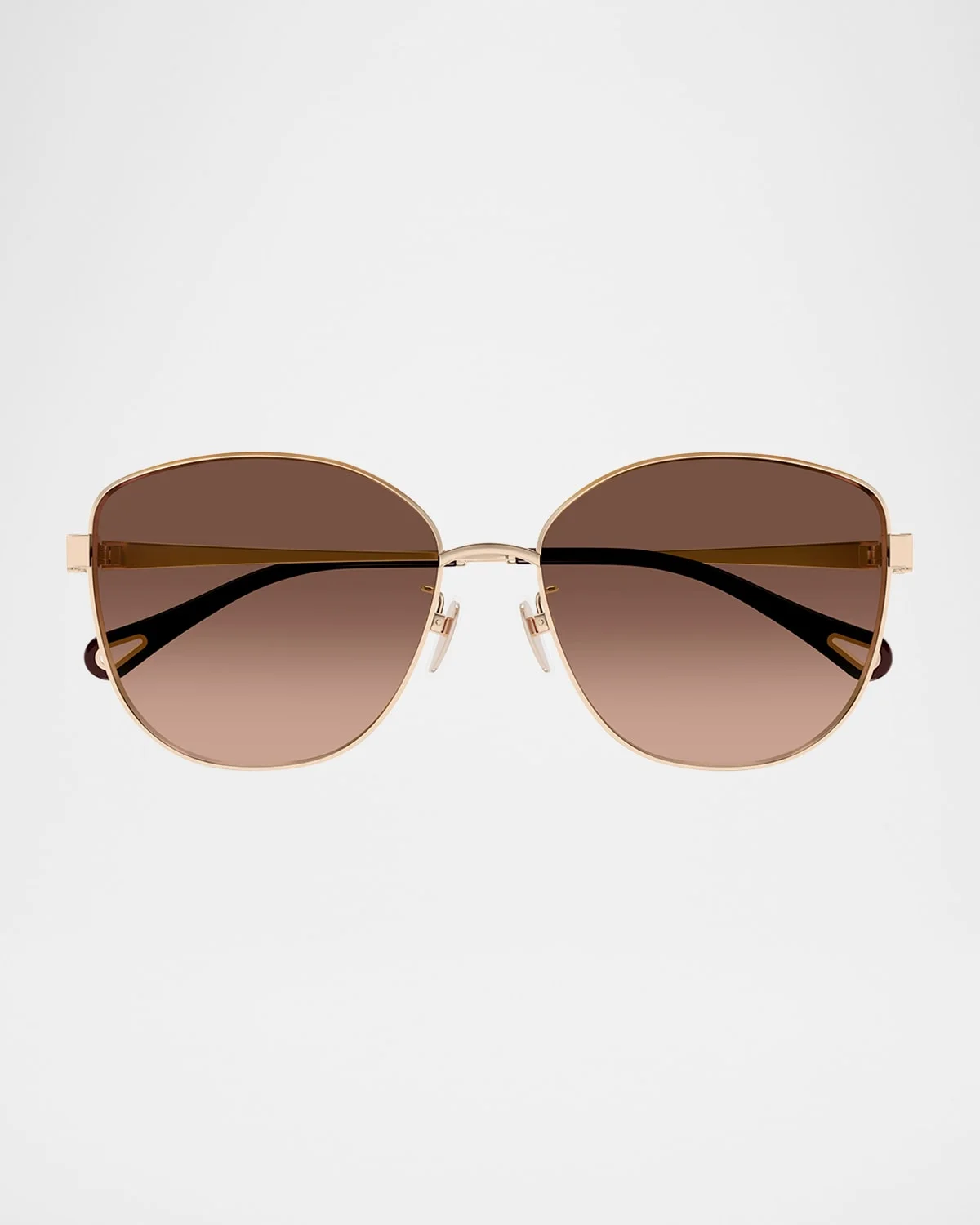 - Chloe butterfly sunglasses in metal - Eye/bridge/temple (in mm): 59-16-145 - Gradient lenses - Adjustable nose pads - Thin, tapered arms - Signature logo at the temples - Metal - 100% UVA/UVB protection - Made in Japan - Proposition 65 warning for California residents