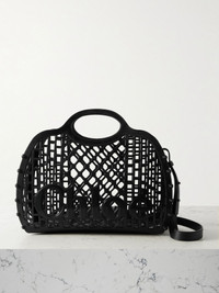 Cage leather-trimmed studded rubber shoulder bag Black