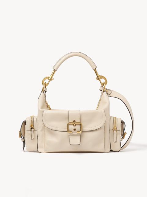This Camera bag is crafted from natural shiny buffalo leather. Its multiple pockets are embellished with revamped buckles from the iconic Paddington bag. Carry the Camera bag in the hand, on the shoulder or cross-body with the handles or strap. PRODUCT DETAILS Double carry camera bag in natural shiny buffalo leather Main material: Buffalo leather Flap lining: Buffalo leather Main lining: 54% Cotton, 46% Linen Carry: Hand, shoulder & cross-body - 1 main compartment - 1 inside flap pocket - 2 double side pockets (flap & zipper closures) - 1 front pocket (magnetic flap closure) - 1 removable handle - 1 adjustable & removable strap Comes with a dust bag - Width: 13.4" (34 cm) - Height: 6.5" (16.5 cm) - Depth: 5.9" (15 cm) - Handle drop: 9.4" (24 cm) - Min. strap drop: 19.7" (50 cm) - Max. strap drop: 23.6" (60 cm) This handbag is made from pure aniline leather. Tanning imparts a specific character to the skin, such as hues and wrinkles, combined with a light and transparent aniline finish. Respect the care instructions on the leaflet. To make this product, Chloe worked with Leather Working Group (LWG) certified leather manufacturers. LWG certifies tanneries based on their water and energy usage, management of chemicals, solid waste, and wastewater. Color: Sweet Beige Item code: CHC24AS533N8324Q