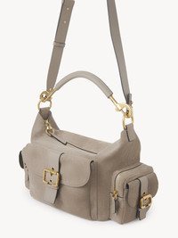 This Camera bag is crafted from suede calfskin. Its multiple pockets are embellished with revamped buckles from the iconic Paddington bag. Carry the Camera bag in the hand, on the shoulder or crossbody with the handles or strap. PRODUCT DETAILS Camera bag in suede calfskin Main material: Calfskin Secondary material: Buffalo leather Main lining: 55% Cotton, 45% Linen Flap lining: Buffalo leather Carry: Shoulder & crossbody - 1 main compartment - 1 inside flat pocket - 2 double side pockets (flap & zip closures) - 1 front pocket (magnetic flap closure) - 1 removable handle - 1 adjustable & removable strap - Zip closure - Comes with a dust bag - Width: 13.4" (34 cm) - Height: 6.5" (16.5 cm) - Depth: 5.9" (15 cm) - Handle drop: 9.4" (24 cm) - Min. strap drop: 19.7" (50 cm) - Max. strap drop: 23.6" (60 cm) This handbag is made of top-grain leather. The grain side was sanded to provide the leather with its velvet-like finish. Depending on the degree of finishing, this technique may produce a leather called nubuck or velvet leather. This material is fragile, particularly with respect to colors. Follow all care instructions on the insert. To make this product, Chloe worked with Leather Working Group (LWG) certified leather manufacturers. LWG certifies tanneries based on their water and energy usage, management of chemicals, solid waste, and wastewater. Color: Motty Grey Item code: CH25US533P3723W