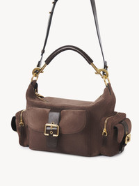This Camera bag is crafted from suede calfskin. Its multiple pockets are embellished with revamped buckles from the iconic Paddington bag. Carry the Camera bag in the hand, on the shoulder or crossbody with the handles or strap. PRODUCT DETAILS Camera bag in suede calfskin Main material: Calfskin Secondary material: Buffalo leather Main lining: 55% Cotton, 45% Linen Flap lining: Buffalo leather Carry: Shoulder & crossbody - 1 main compartment - 1 inside flat pocket - 2 double side pockets (flap & zip closures) - 1 front pocket (magnetic flap closure) - 1 removable handle - 1 adjustable & removable strap - Zip closure - Comes with a dust bag - Width: 13.4" (34 cm) - Height: 6.5" (16.5 cm) - Depth: 5.9" (15 cm) - Handle drop: 9.4" (24 cm) - Min. strap drop: 19.7" (50 cm) - Max. strap drop: 23.6" (60 cm) To make this product, Chloe worked with Leather Working Group (LWG) certified leather manufacturers. LWG certifies tanneries based on their water and energy usage, management of chemicals, solid waste, and wastewater. Color: Dark Taupe Item code: CH25US533P37080