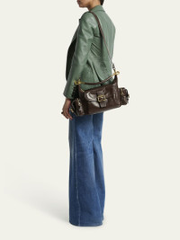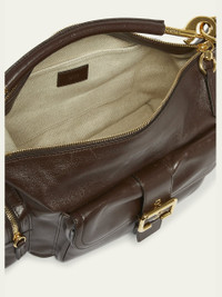 Chloe camera top handle bag in calfskin leather Detachable top handle Detachable, adjustable crossbody strap Can be worn as a top handle or crossbody bag Zip top closure Exterior, two zip pouches and one buckle flap pouch Interior, one slip pocket Lining: Cotton/linen Approx. 6.2"H x 13.3"W x 5.9"D Made in Italy