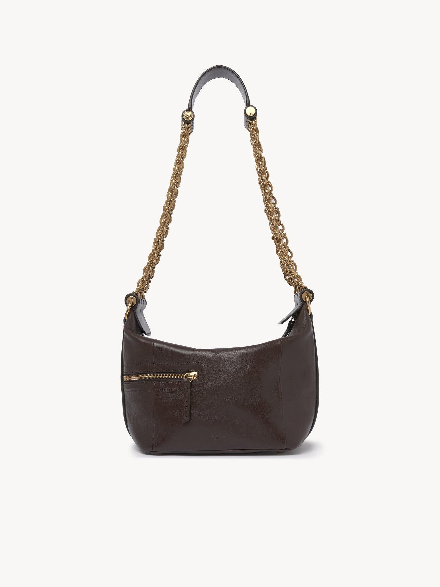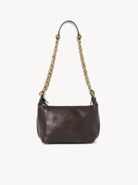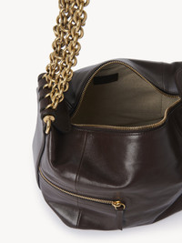 Crafted from natural shiny buffalo leather, the Camera Chain shoulder bag is inspired by the Chloe archives. A statement piece, it contrasts a minimalist boxy silhouette with a metallic antique gold chain and the Maison's signature Horse Medal hardware. PRODUCT DETAILS Camera Chain bag in natural shiny buffalo leather Main material: Buffalo leather Main lining: 55% Cotton, 45% Linen Carry: Shoulder - 1 main compartment - 1 external zipped pocket - 1 inside flat pocket - Zip closure Comes with a dust bag - Width: 11.8" (30 cm) - Height: 6.3" (16 cm) - Depth: 7.9" (20 cm) - Chain drop: 16.9" (43 cm) This handbag is made from natural shiny buffalo leather. Avoid contact with other materials (e.g. magazines, other leathers, raw fabrics, dark colored items) that could transfer their pigments to the product. Avoid contact with abrasive surfaces. Avoid contact with water: if the product gets wet, dry it with a soft white absorbent cotton cloth. Avoid prolonged contact with heat sources: radiators, car interiors in the sun, etc. Avoid prolonged contact with direct light. For surface stains, use a soft, absorbent white cotton cloth. Do not use soap or solvents. To make this product, Chloe worked with Leather Working Group (LWG) certified leather manufacturers. LWG certifies tanneries based on their water and energy usage, management of chemicals, solid waste, and wastewater. Color: Kohl Brown Item code: CHC25SS418N8324X