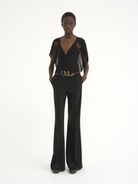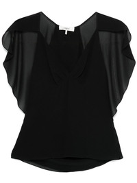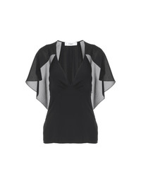 Cape top in silk georgette, featuring thin straps with a fluid cape that covers the shoulders and back. PRODUCT DETAILS Cape top outer shell: 100% Silk Care: dry cleaning only Fit: straight, spaghetti straps - The model is 5'10" (178 cm) and wears a prototype in size 34 - Silk top - Invisible side zipper Color: Black Item code: CH24AHT46002001