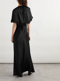 Cape-effect lace-trimmed silk-satin gown Black
