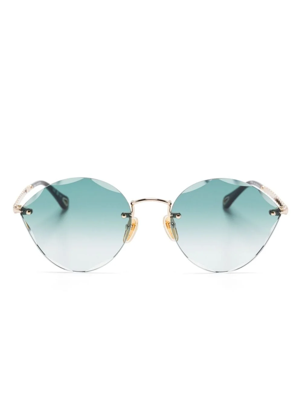 cat-eye sunglasses Highlights - Gold-tone - Metal - Rimless scalloped lenses - Green gradient lenses - Nose pads - Wavy sculpted arms - Curved tips - These glasses come with a protective case. Made in Italy Composition Metal 100% SIZE & FIT Measurement Arm Length 5.51 in(14 cm) Bridge Width 0.78 in(2 cm) Lens Diameter 2.28 in(5.8 cm) Total Width 5.7 in(14.5 cm)