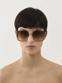 Timeless and elegant, the Celeste square sunglasses feature a brown metal frame accentuated with gold metal stripes. Soft gradient brown lenses enhance the classic appeal of this easy-to-wear women's accessory. Drop-shaped openings at the temple tips make these women's sunglasses compatible with Chloé's eyewear jewelry. PRODUCT DETAILS Square sunglasses in metal & a bio-based material - 100% UVA and UVB protection - Filter category: 2 - Chloé logo engraved on the left temple - Drop-shaped opening with Chloé logo - Can be accessorized with all eyewear jewels These ladies' sunglasses come with a case and lens cloth - Lens: 2.3" (59 mm) - Bridge: 0.7" (19 mm) - Temple: 5.7" (145 mm) - Brown & gold metal frame - Gradient brown lenses Item code: CHC22WEK0143743