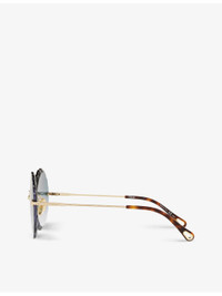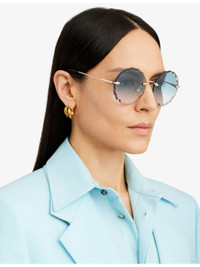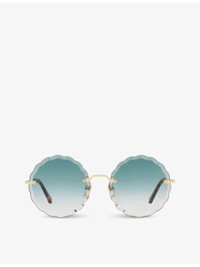 PRODUCT DETAILS - Chloé metal round-frame sunglasses - Frame material: metal - Lens material: acetate - Style Number: CH0047S - Rimless, scalloped frames, tinted lenses, curbed nose bridge, nose pads, engraved arms, curved tips, 100% UV Protection, gold-tone hardware - Frame shape: round - Lens size 60 mm, bridge width 19 mm, temple length 140 mm - Wipe with a clean, dry cloth - Made in Italy - One-year manufacturer's warranty - Comes with a cloth and case