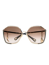 Charms sunglasses Highlights - Brown gradient - Octagonal shape - Gold-tone metal frame - Decorative charm detailing - Tinted lenses - Slim side arms - Logo embellishment - These glasses come with a protective case. Imported Composition Enamel 100%, Metal 100%, Nylon 100% SIZE & FIT Measurement Arm Length 5.7 in(14.5 cm) Bridge Width 0.66 in(1.7 cm) Lens Diameter 2.36 in(6 cm)